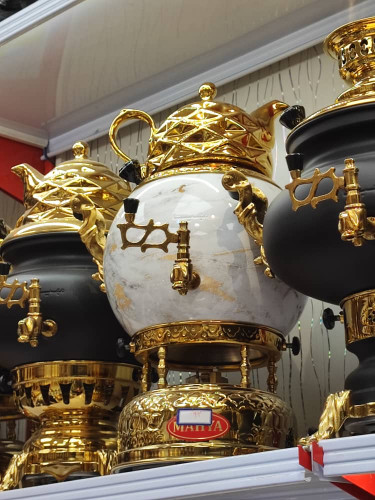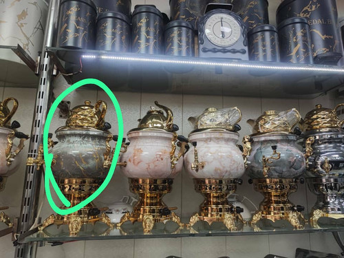 سماور سه کاره طرح سنگ.کاره آبکاری pvd جنس بدنه ترکیب استیل و برنج برند پرنس دارای یکسال گارانتی ظرفیت.کتری6 لیتردارای ترموکوبل۶٬۹۰۰٬۰۰۰ 8%