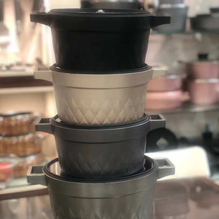عالی ترین و بهترین قابلمه دم دستی جنس بدنه چدن جنس داخل تیتانیوم ضد خش کف اینداکشن رنگ بدنه کوره ای و نسوز کیفیت عا